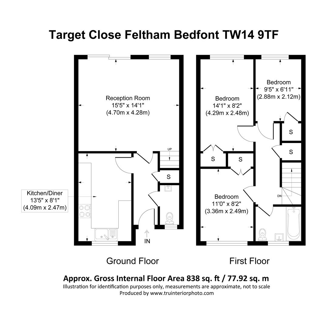 A three bedroom staggered terraced house, situated in this popular residential cul-de-sac within easy reach of local shops, Hatton Cross station and further transport links. The accommodation comprises lounge, kitchen/diner, cloakroom, on the first floor three bedrooms and family bathroom. The property also benefits from double glazed windows, gas central heating, front and rear gardens and garage in a block.