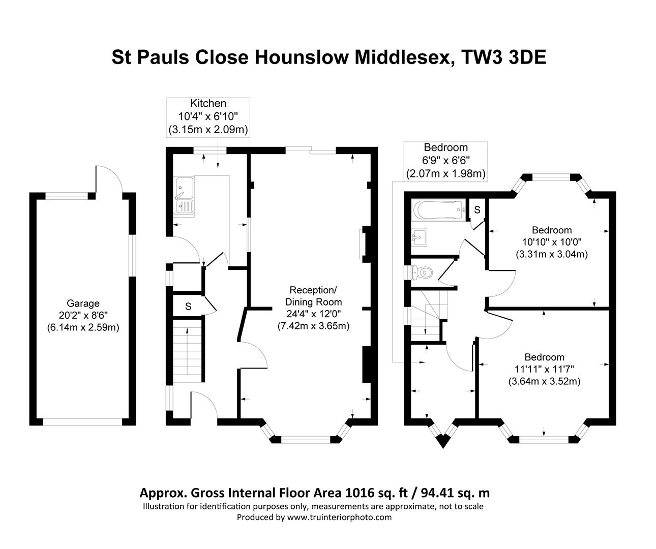 Front Garden - Path to door with lawn and flower and shrub borders, own driveway leading to garage to side with up and over door, lighting and power. Side gate to rear garden. The property has potential for a double storey extension to the side and rear extension (stpp).